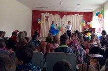 Сегодня во второй младшей группе "Почемучки" прошло развлечение под названием "День рождения группы". На праздник приходили герои сказок: хитрая лиса и дедушка, которых сыграли родители ребятишек этой группы. Ребятишки вместе со своими мамами и папами пели песни, читали стихи, играли и танцевали. В конце развлечения дедушка принес всем пирог и в группе состоялось семейное чаепитие.