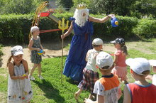 Сегодня в прогимназии прошло яркое спортивно-театрализованное мероприятие "День Нептуна". Сам царь морей Нептун и его свита приветствовали детей и родителей на спортивной площадке прогимназии. Дети с удовольствием участвовали в соревнованиях и играх с водой. Финальной точкой праздника стало угощение от Нептуна - "Морской коктель" (сок).