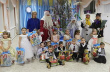 Весёлый, новогодний праздник прошёл в начальных классах прогимназии. Сказка учила добру, верности, скромности, трудолюбию, умению любить нежно и искренне. На празднике использовалась современная новогодняя музыка - песни и хороводы. Праздник прошел весело и интересно, с прекрасной игрой маленьких артистов. Великолепно сыграли персонажи (Баба Яга, Леший, Кощей Бессмертный, Дед Мороз, Снегурочка), которые приготовили сюрпризный момент с подарками. У всех детей было новогоднее праздничное настроение.