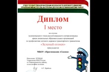 Прогимназия "Сказка" заняла I МЕСТО в муниципальном этапе республиканского смотра-конкурса по профилактике детского дорожно-транспортного травматизма "ЗЕЛЁНЫЙ ОГОНЁК - 2014" среди дошкольных образовательных учреждений Нижнекамского муниципального района. За победу в конкурсе учреждение награждено ДИПЛОМОМ и двумя детскими велосипедами. ПОЗДРАВЛЯЕМ! МОЛОДЦЫ!