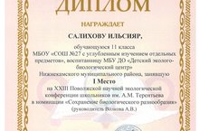 1 место в XXIII Поволжской научной экологической конференции школьников имени А.М.Терентьева 06.02.2017