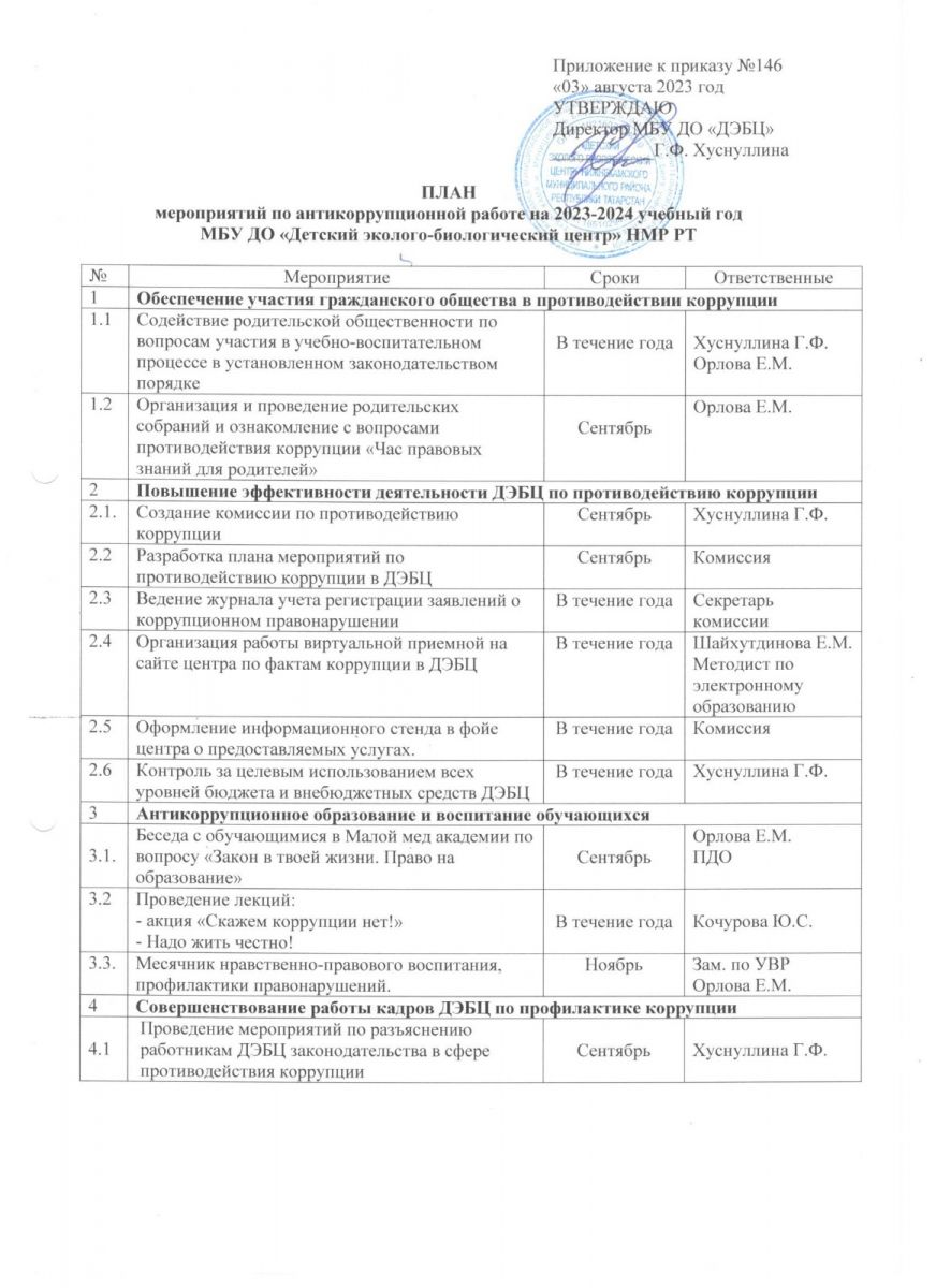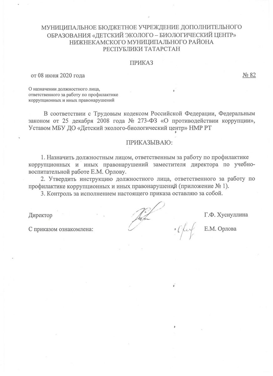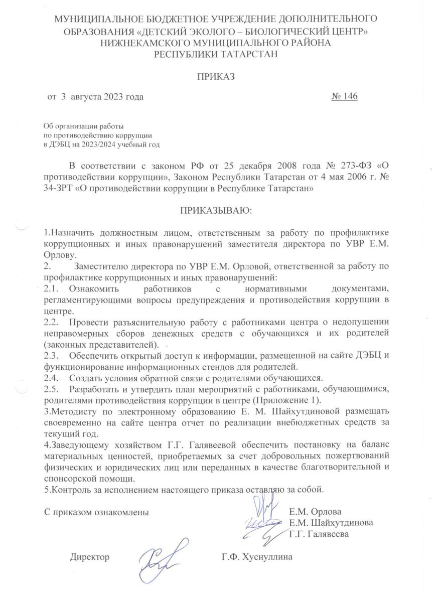 Приказ МБУ ДО "ДЭБЦ" "О противодействии коррупции" 2023
