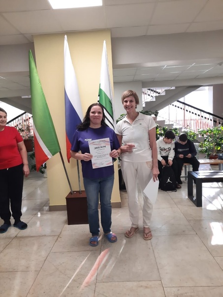Наш инструктор по физической культуре Валеева Диляра Рафаиловна в личном зачёте в плавании, кроль на груди, заняла 1 место