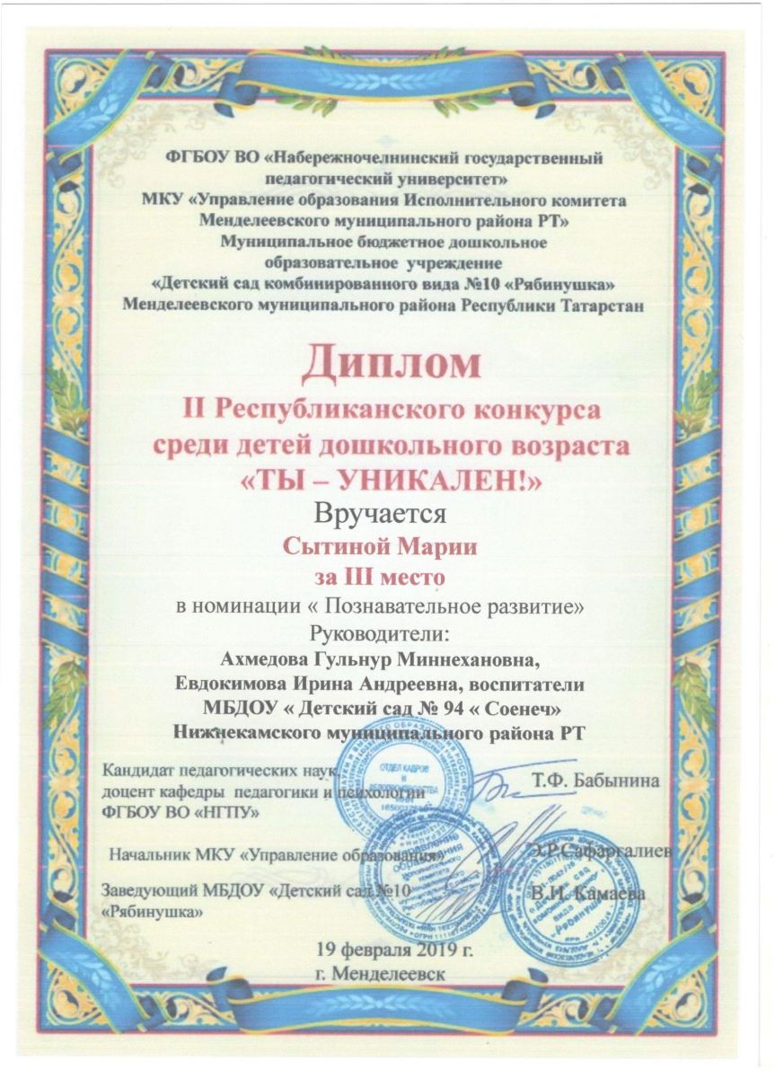 | Короткое название: | МБДОУ "Детский сад № 94 "Соенеч" НМР РТ |