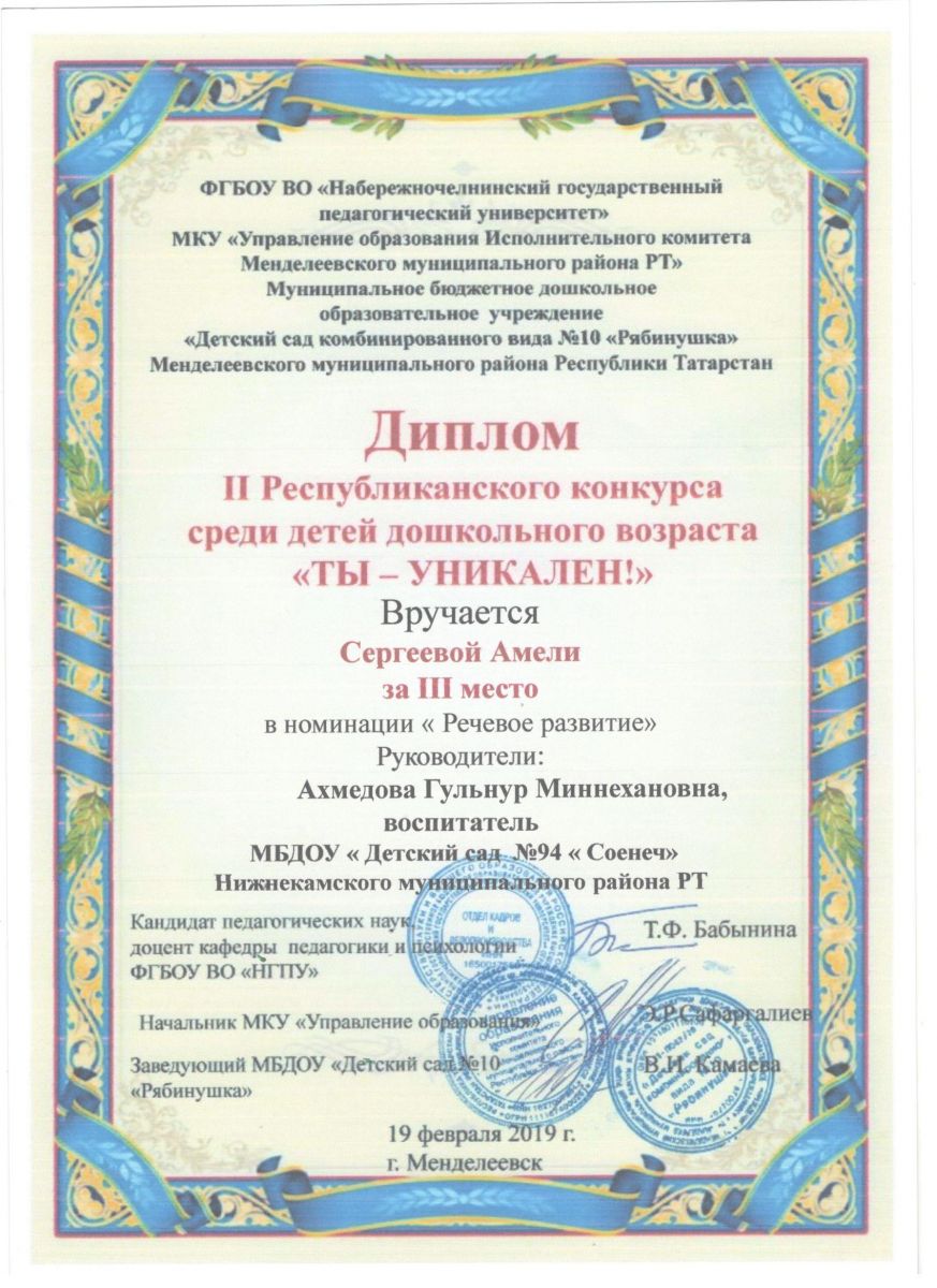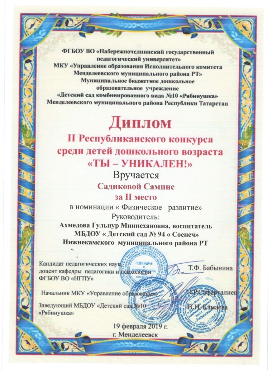 Муниципальное бюджетное дошкольное образовательное учреждение "Детский сад №94 "Соенеч" Нижнекамского муниципального района РТ/Татарстан Республикасы Түбән Кама муниципаль районы «94-нче санлы «Сөенеч балалар бакчасы» муниципаль бюджет мәктәпкәчә белем учреждениесе