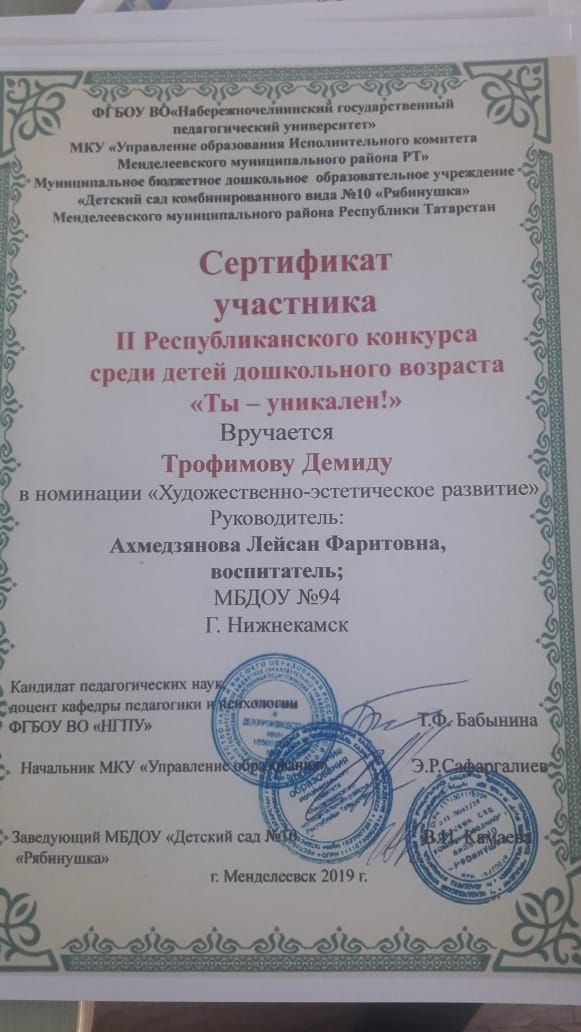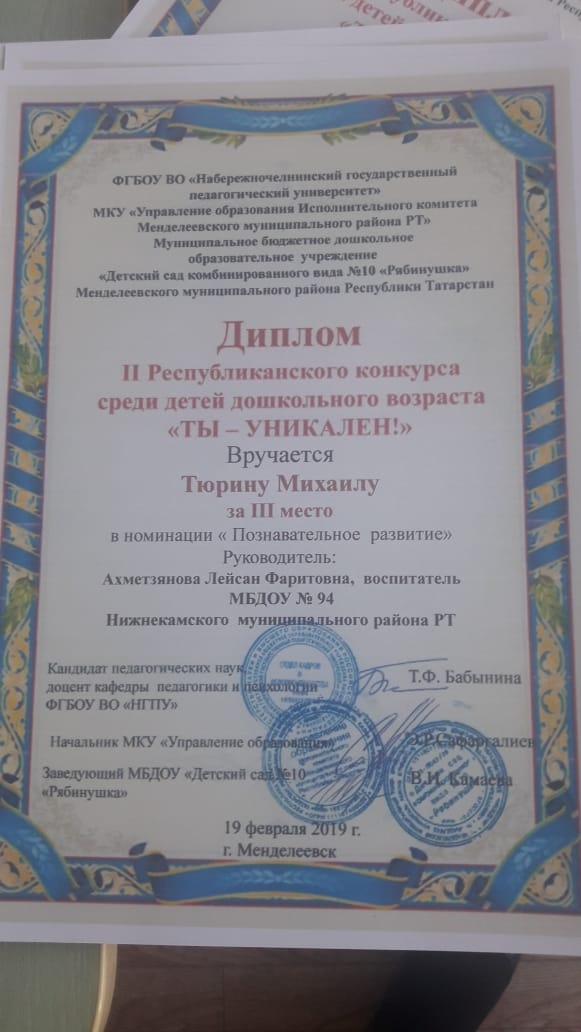 II Республиканский конкурс среди детей дошкольного возраста "Ты -уникален!"