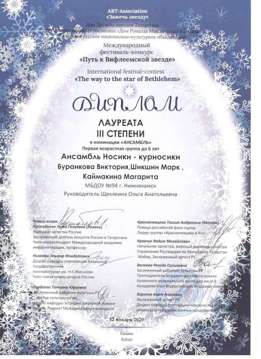Муниципальное бюджетное дошкольное образовательное учреждение "Детский сад №94 "Соенеч" Нижнекамского муниципального района РТ/Татарстан Республикасы Түбән Кама муниципаль районы «94-нче санлы «Сөенеч балалар бакчасы» муниципаль бюджет мәктәпкәчә белем учреждениесе