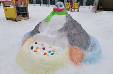 Одной из интересных традиций нашего детского сада является создание снежных фигур. В этом году мы выбрали креативных Пингвинов . Когда снега выпадает много и погодные условия дают возможность создать фигуры, то фантазии наших ребят и родителей нет предела.