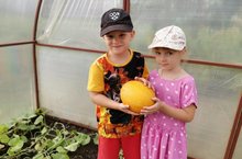 Приятно угощать гостей сладкой медовой дынькой, выращенной на своем огороде. Сегодня эту культуру часто сажают на дачных участках, но не всегда удается получить щедрый урожай — она более требовательна в уходе, чем привычные кабачки и огурцы. Воспитанники 6 группы хотят поделиться с читателями своими знаниями и секретами выращивания. Сначала высаживали семечки в стаканчики, ухаживали, поливали. Когда появились первые листочки, посадили рассаду в теплицу. В теплице работы тоже очень много, что бы получить много дынь, нужно ухаживать за рассадой, поливать, рыхлить почву, бороться с сорняками. И наконец-то настал тот день, когда воспитанники смогли сорвать первую дыню.