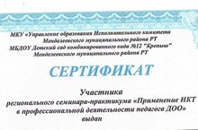 Сегодня, 5 мая в г.Менделеевск прошел региональный семинар-практикум "Применение ИКТ в профессиональной деятельности педагога дошкольного образования". Педагоги нашего детского сада приняли активное участие в данном мероприятии.