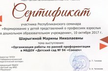 Сегодня педагог-психолог Егорова Е.Н. и старший воспитатель Шарыгина М.Н. приняли активное участие в Республиканском семинаре "Формирование у детей представлений о профессиях взрослых в дошкольном образовательном учреждении", который прошел в г.Набережные Челны МБДОУ "Детский сад №65 "Машенька" с мастер-классами.