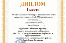 Поздравляем нашего педагога дополнительного образования Шурыгину Елизавету Юрьевну с победой на Республиканском конкурсе развивающих игр и дидактических пособий "Обучаемся играя".