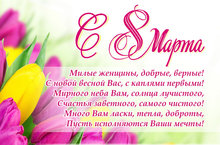 Поздравляем всех милых дам с Международным женским днём 8 марта! Пусть улыбки освещают ваши лица, пусть у вас в душе всегда будет радость и гармония!