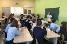 Педагог детского технопарка «Кванториум» Хамидуллина Лейсан Айратовна и лаборант Шакирова Алина Эльвировна провели мастер-класс «Изготовление скраба для тела» для учеников 5Г класса СОШ №36.