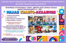 Впервые на базе Детского технопарка "Кванториум" начинает свою работу Малая Кванто-Академия - для самых-самых маленьких. Количество мест ограничено. Информация по телефону +7(8555) 41-13-05