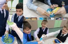 В группе продленного дня ученики 4 А своими силами создавали ньютоновскую жидкость. Дети выявили свойства жидкости : текучесть, сохранение объёма, вязкость, смачивание и смешиваемость.
