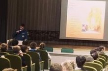 Сегодня у нас снова гости. Тазиев Рустам Рамильевич, сотрудник МЧС, провел линейку по правилам пожарной безопасности.