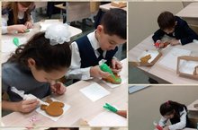 Праздник медленно, но уверенно приближается. Ученики 2Д класса решили сделать праздничные Рождественские подарки для родителей. А подарок должен быть не только красивым, но еще и вкусным. Ребята украшали пряники в форме елочки и варежки.