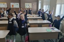 Каждое утро в 1 Е классе начинаем с зарядки. В здоровом теле - здоровый дух!