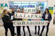 Без, 8 а сыйныфы укучылары, "Мин татарча сөйләшәм!" акциясенә кушылдык. Кибетләрдә сатучылар белән аралаштык, Түбән Кама халкының татарча белүләре белән кызыксындык, сүзлекчәләр бүләк иттек. Безне бөтен җирдә дә җылы каршы алдылар, бик теләп аралаштылар.