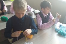 На уроке технологии в 3 Б классе #норма36 учатся вязать и мальчики, и девочки.Кстати, у мальчишек получается лучше.