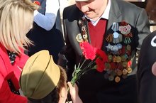 Воспитанники Центра приняли участие в поздравлении с Днем Победы ветерана Великой Отечественной войны Давляткирова Зиннура Давляткировича, который проживает в 47 мкр.