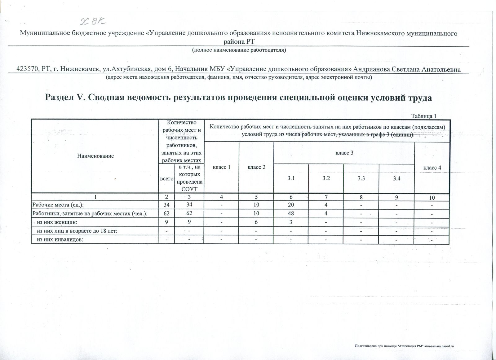 - Сводная ведомость результатов проведения специальной оценки условий труда