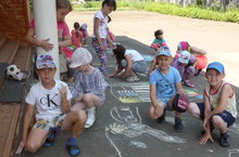 23 июня 2015 года ПДО Галлямова Г.Я. провела с детьми пришкольного лагеря СОШ № 6 конкурс рисунков на асфальте "Палитра безопасности"