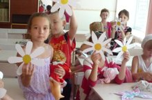 Галлямова Г.Я. в пришкольном лагере СОШ № 6 провела с детьми занятие по рисованию на тему «Ромашка – символ любви и верности», «Счастье моё – семья», посвященное Дню семьи, любви и верности.