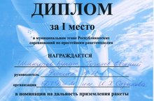 17 мая 2015 года учащиеся детского объединения «Ракетокосмическое моделирование» (педагог Россиев А.Н.) приняли участие в республиканских лично-командных соревнований по простейшим ракетомоделям среди учащихся РТ.