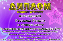 - Диплом высшей степени за лучшую работу - Русскова Рената.