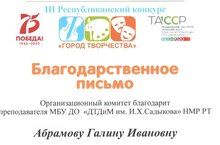 | Короткое название: | МБУ ДО "ДТДиМ им.И.Х.Садыкова" НМР РТ |