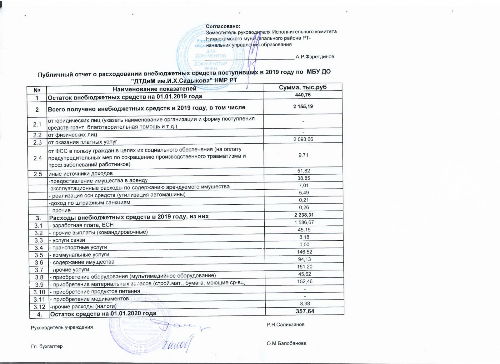Публичный отчёт о расходовании внебюджетных средств поступивших в 2020 г ,