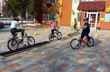 На территории Детского автогородка юидовцы отрабатывают навыки практической езды на велосипеде.