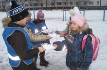 Перед зимними каникулами юные инспекторы дорожного движения из школы № 19 организовали акцию «Снежинка в дорогу».