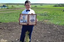 «Мы посадили дерево в честь моего бабая Ахатова Кашата Ахатовича. В 1944 году бабаю исполнилось 18 лет и он ушел на фронт по призыву, попал 56 строевой полк, где воевал в звании стрелок. В апреле 1945 года в боях его ранило в левое плечо.
