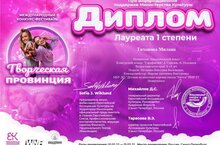 Европейская Ассоциация Культуры проводит региональные, всероссийские, международные, европейские конкурсы-фестивали, а также премии в области исполнительского искусства в различных регионах Российской Федерации, а также Европейских странах ( Эстония, Швеция, Латвия, Нидерланды, Греция, Дания, Австрия).Подведены итоги Международного конкурса-фестиваля « Творческая провинция», мы от души поздравляем преподавателя Игошину Викторию Васильевну, концертмейстера Нырову Антонину Викторовну и нашу воспитанницу Тихонову Милану, ставшую Лауреатом I степени.
