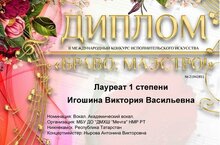 Прошёл II международный конкурс исполнительского искусства «Браво, Маэстро» при поддержке Департамента культуры г.Москвы , Комитета по культуре Санкт-Петербурга, Комитета по культуре и туризму Ленинградской области, Министерства культуры Республики Дагестан, Министерства культуры Нижегородской области.Подведены итоги,мы от души поздравляем преподавателя Игошину Викторию Васильевну, концертмейстера Нырову Антонину,Виктория Васильевна стала Лауреатом I степени в номинации «Академический вокал».Благодарим ВАС, дорогие преподаватели, за преданность искусству и любовь к своему делу.Спасибо, что в сегодняшних непростых условиях вы продолжаете проявлять высочайший профессионализм и вдохновлять ваших учеников на новые победы и достижения!
