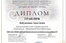 Гордимся нашими выпускницами. Бабушкина Анстасия (выпуск 2020г)стала обладетель Гран-при на Всероссийском конкурсе инструментального, вокального,хореографического, театрального и декоративно-прикладного искусства "Музыка Великой страны", а ее преподаватель Малиновская Ольга Николаевна получила диплом "Лучший руководитель" и благодарственное письмо.