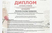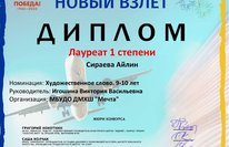Дипломом лауреата I степени на Международном многожанровом конкурсе "Мирное небо. Новый взлет"награждена Сираева Айлин , преподаватель Игошина Виктория Васильевна. Поздравляем!