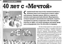 "Скрипичный ключ высотой в человеческий рост, миллионы алых (и не только) роз и много чудесной музыки. Хоровая школа "Мечта"в апреле отметила свой сороколетний юбилей.Мероприятие, которое прошло в музыкальном колледже, надолго запомнится и детям, и взрослым. Об этом говорит хотя бы тот факт, что после концерта зал минут двадцать аплодировал стоя. Но обо всем по порядку",- так начала свою статью журналист Евгения Корбакова в газете "Мы-нижнекамцы",№5, май 2019г.