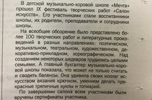 В детской музыкально-хоровой школе « Мечта» прошел IX фестиваль творческих работ « Салон искусств». Его участниками стали воспитанники школы, их родители, преподаватели и административно - управленческий состав.На всеобщее обозрение было представлено более 100 творческих работ и литературных произведений в разных направлениях: поэтическом, музыкальном, театральном, художественном, декоративно-прикладном, хореографическом. Над созданием некоторых шедевров трудились целыми семьями. Не отставали и преподаватели, главный бухгалтер учреждения удивил своим работами – связанный крючком пасхальный заяц, тряпичная кукла, апельсиновое дерево (топиарий) и художественные картины, не только считать и сводить балансы может сотрудник, но и творческое увлечение -это хобби для самосовершенствования и саморазвития.По завершению салона всем участникам были вручены Сертификаты.Мероприятие закончилось, а слова благодарности от родителей преподаватели «Мечты» слышали ещё несколько дней.«Хотела выразить огромную благодарность администрации и всем педагогам нашей "Мечты" за организацию данного мероприятия. Все прошло настолько замечательно, разнообразно и тепло ,по-семейному, что ли. Люблю все ваши мероприятия, лично я ушла с восторгом на душе. Виден был огромный труд и подготовка, как педагогов, так и замечательных детей. "Мечта" это позитив и добро. Спасибо»,-написала одна из родительниц. Спасибо ВАМ.