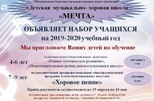 МБУДО "Детская музыкально-хоровая школа "Мечта" НМР РТ объявляет набор обучающихся на 2019-2020 учебный год.