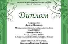 С результативным участием в Международной вокально-хоровой ассамблее "CANZONIERE" поздравляем воспитанников класса вокала Кирилловой Кристины Петровны, концертмейстер - Андреева Вероника Петровна: