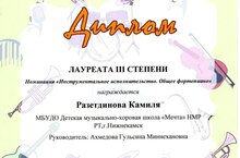| Короткое название: | МБУДО «ДМХШ «Мечта» НМР РТ |