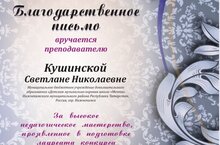 От души поздравляем Мосову Екатерину и ее преподавателя Кушинскую Светлану Николаевну с победой в Международном конкурсе исполнителей общего фортепиано"Белый рояль", Екатерина стала Лауреатом 1 степени.