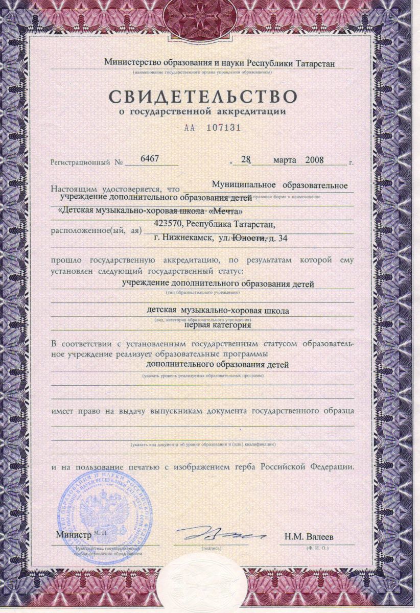 • Свидетельстьво о государственной аккредитации