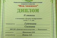 21 марта в г.Набережные Челны прошел Открытый Региональный фестиваль-конкурс татарского искусства "Мон чишмэсе". Гудочкина Снежана, учащаяся 2 класса отделения "музыкальное искусство" успешно выступила на фестивале и получила Диплом 2 степени в номинации "Духовые инструменты. Преподаватель Минхазова Д.М. Концертмейстер Имаева Э.Н. Молодцы! Поздравляем!