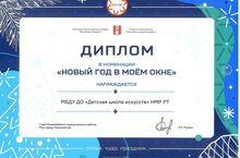 "Балалар сәнгать мәктәбе" иң яхшы яңа ел бизәлеше муниципаль бәйгесенең "Минем тәрәзәмдә яңа ел" номинациясендә җиңүче булып танылды.