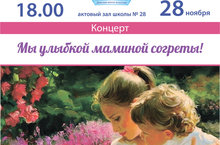 28 ноября в 18.00 в актовом зале школы №28 состоится концерт, посвящённый Дню матери «Мы улыбкой маминой согреты!» В программе: выступление учащихся отделений «Музыкальное искусство» и «Хореографическое искусство» и выставка творческих работ учащихся отделений «Изобразительное искусство» и «Дизайн».